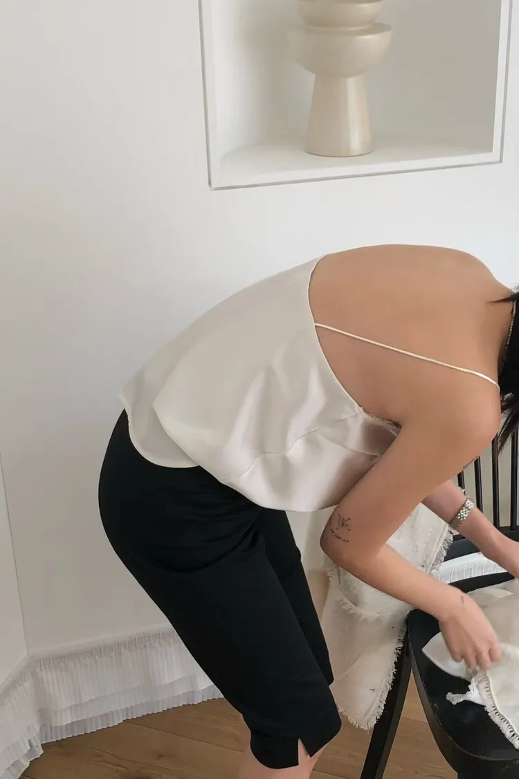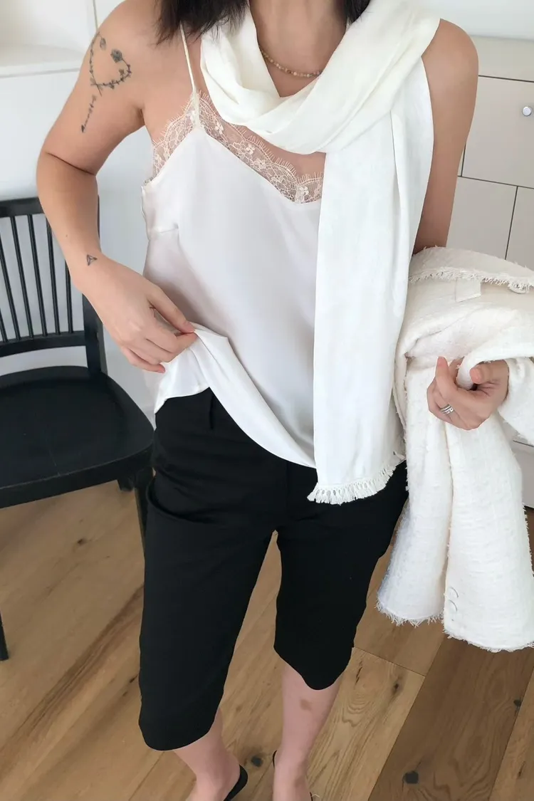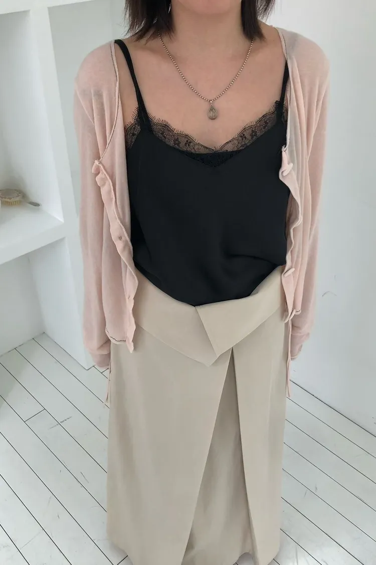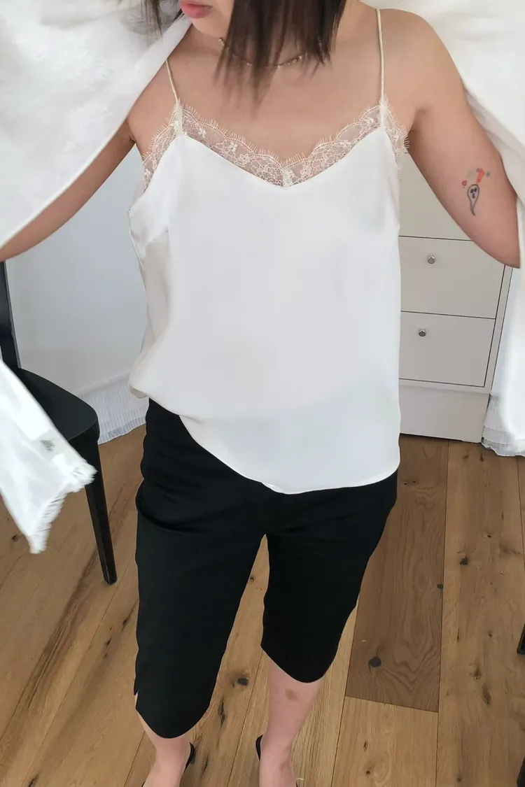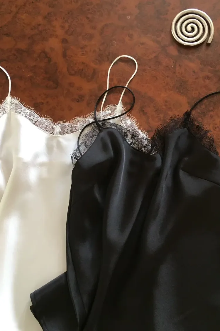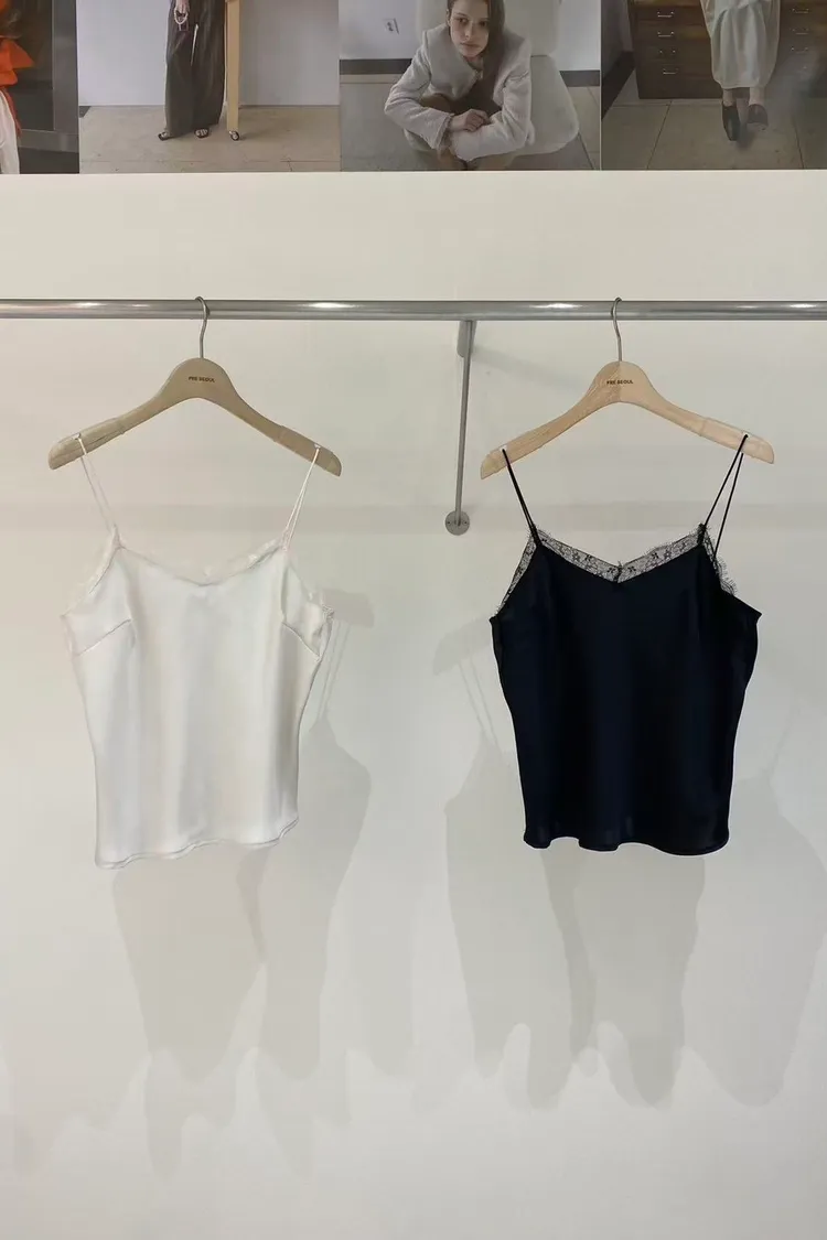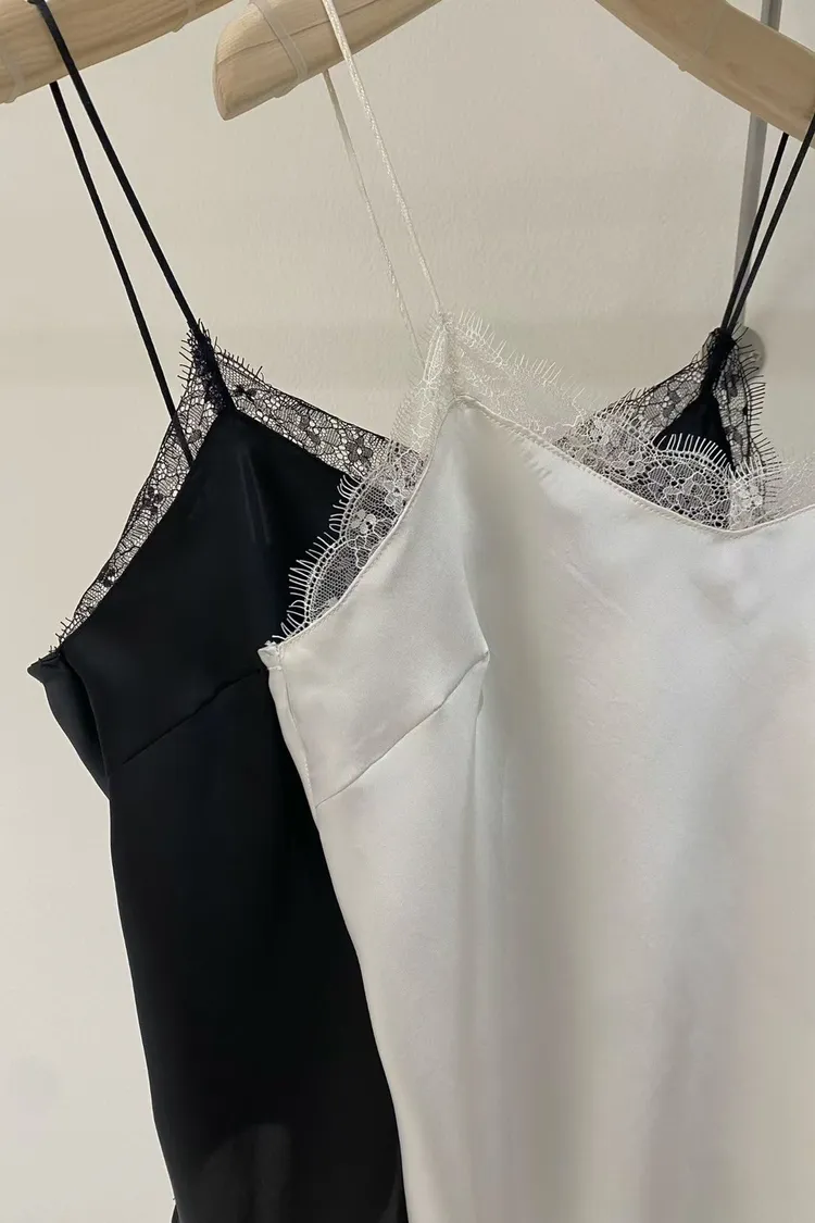 優雅緞面細肩蕾絲背心