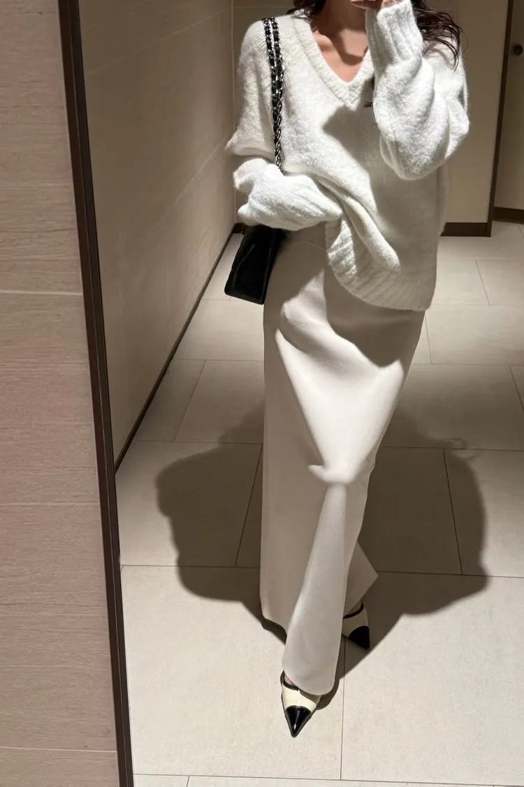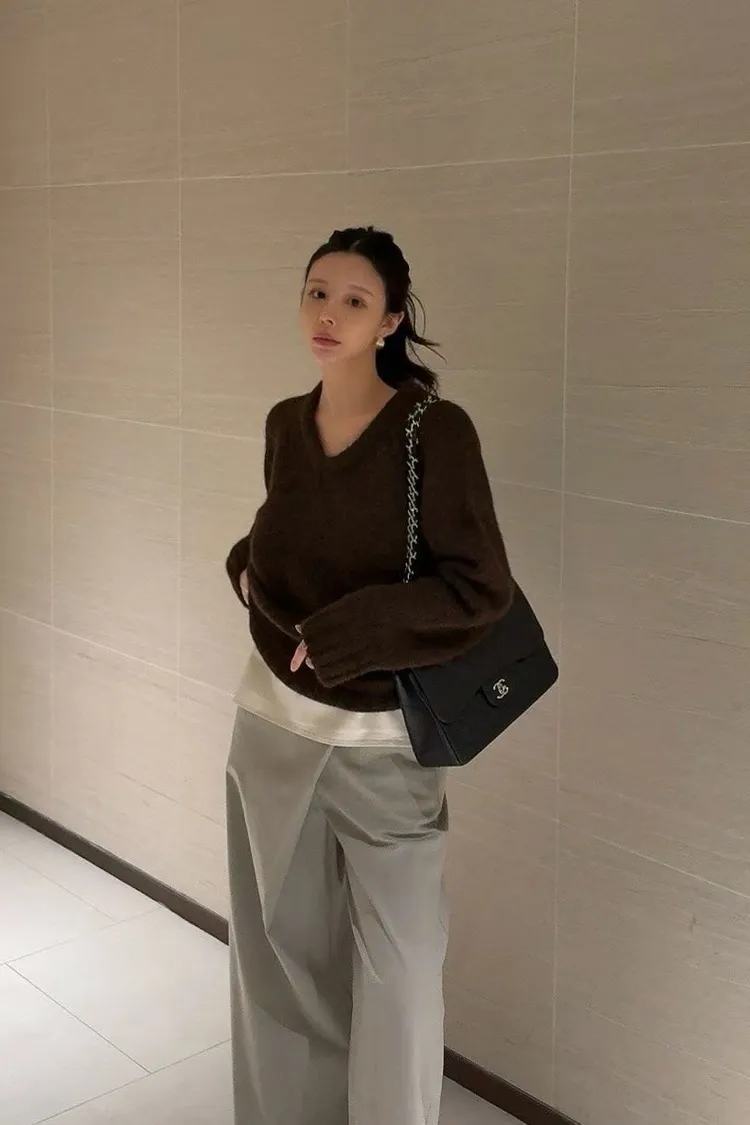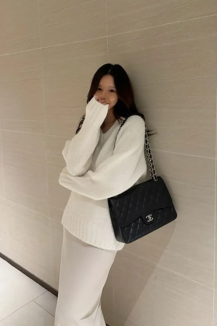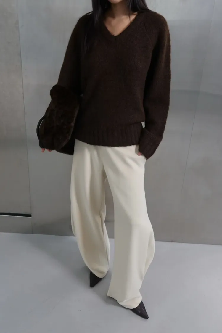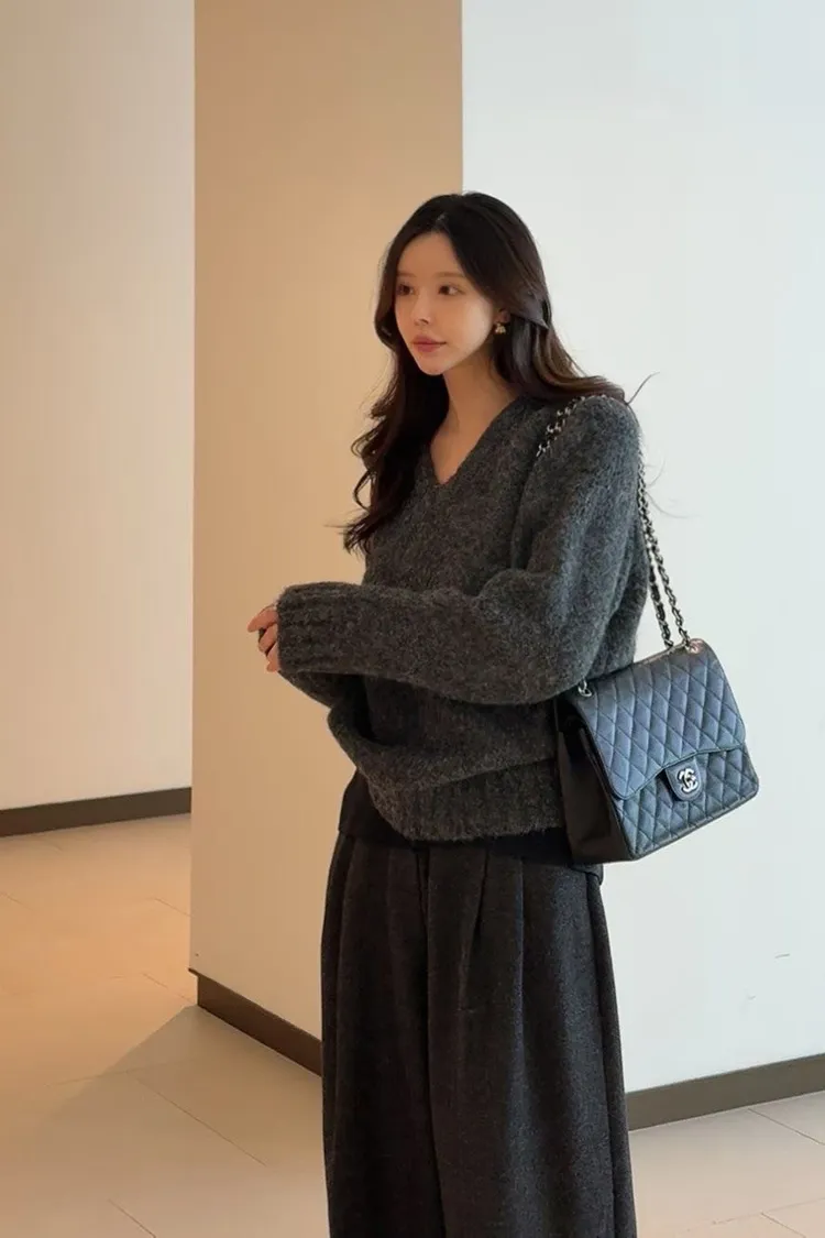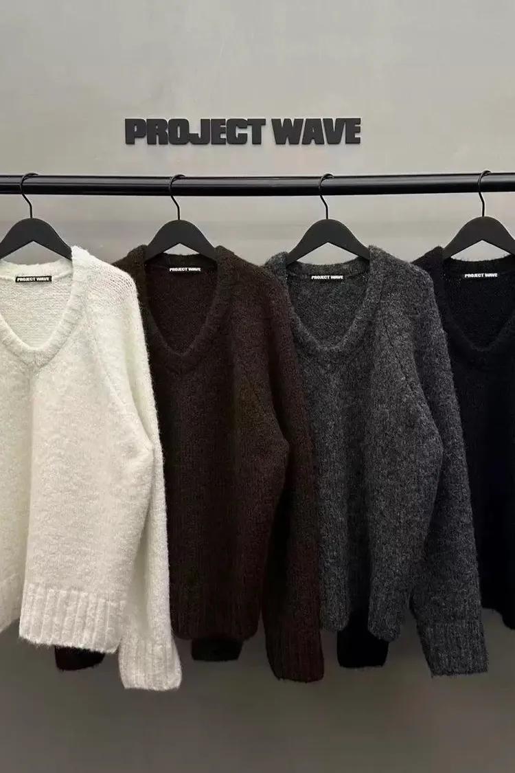 厚實V領寬鬆毛衣