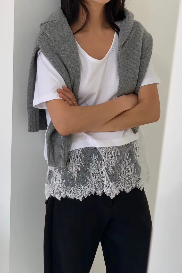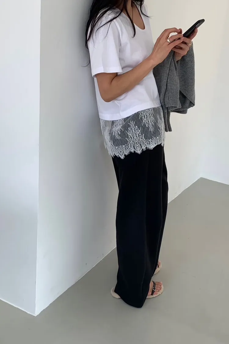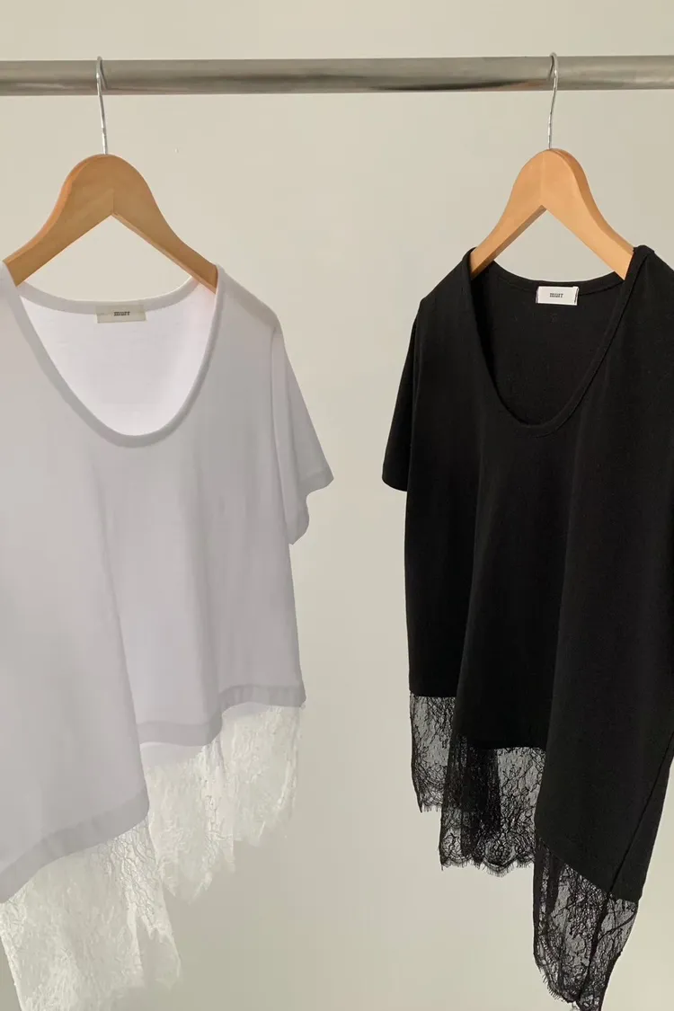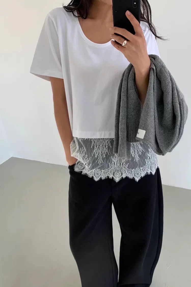 時髦蕾絲拼接短袖上衣