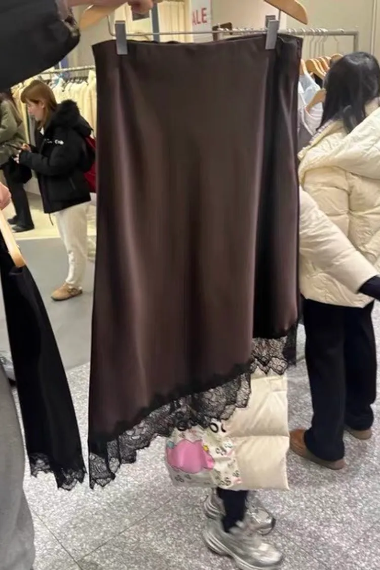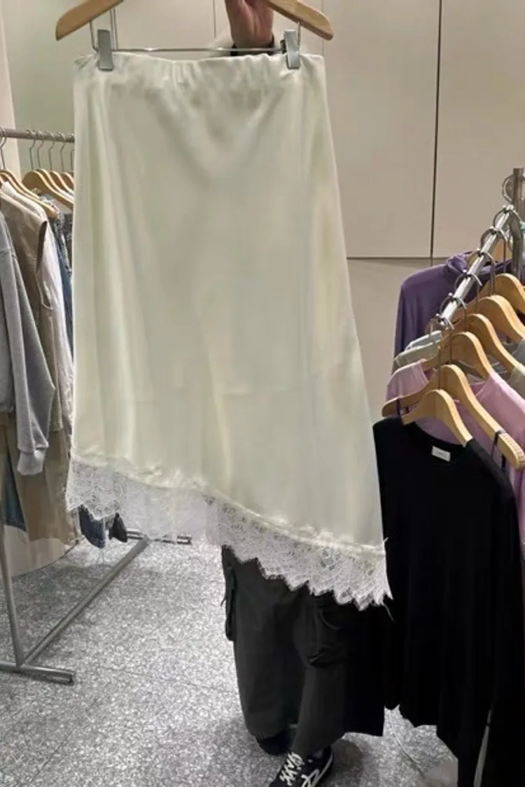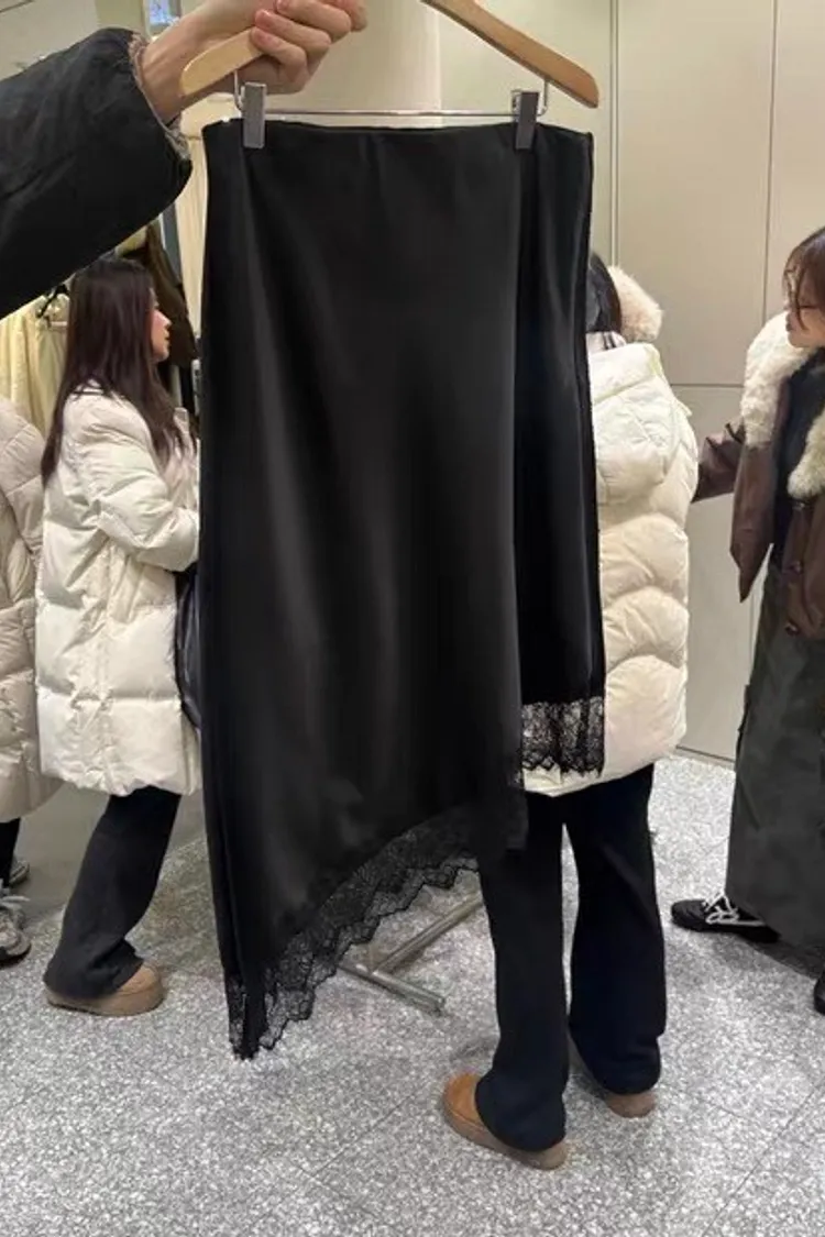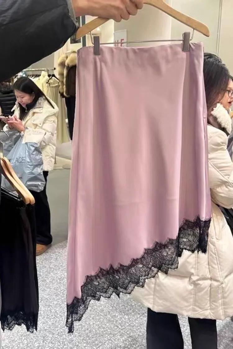 優雅斜蕾絲半身裙